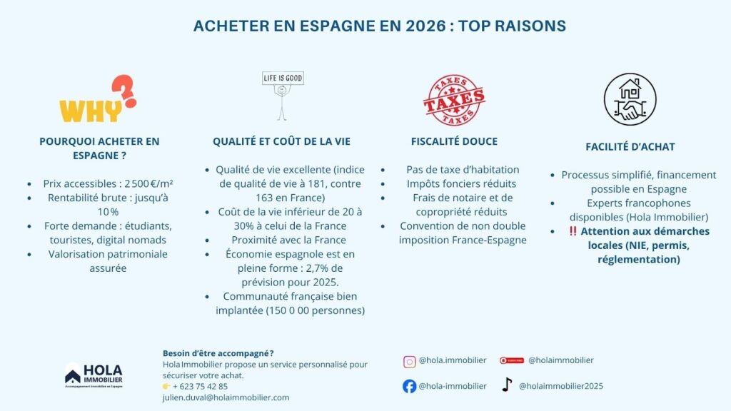 Synthèse des avantages d’acheter en Espagne en 2026
